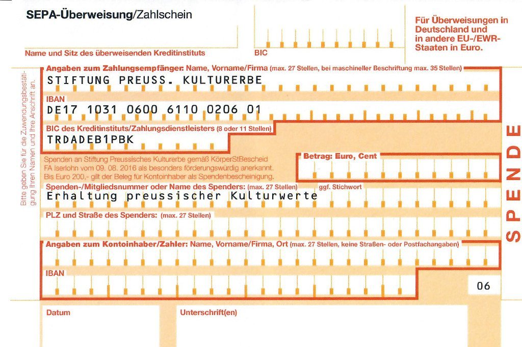 Und so sieht damit der ausgefüllte Überweisungsträger aus: